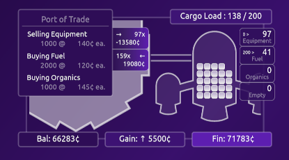 Trading System: Move goods between space ports and earn credits.